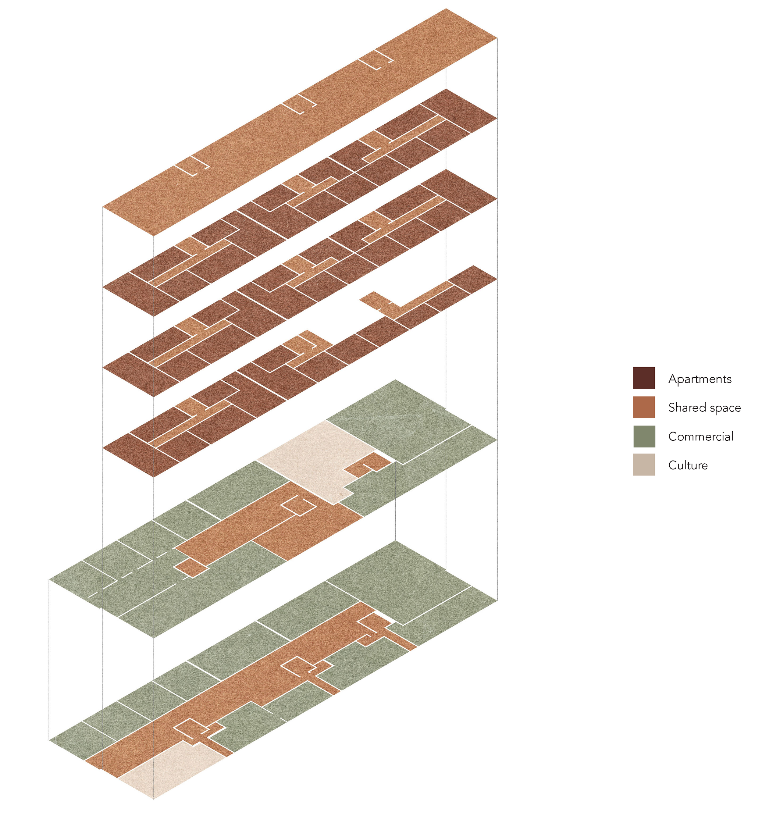 Industribygget fra 1930 og utvidelsen fra 1937, transformeres med fokus på aktive førsteetasjer og nye leiligheter i form av et påbygg. Disse bygges i tre etasjer over den sørlige halvdelen av industribyggene, for å bevare den gule-listede fasaden og solforholdene i Kabelgata. Den sørlige fasaden derimot redesignet for å skape større åpenhet mellom virksomhetene og Tårnparken, samt utnytte de gode solforholdene bedre.