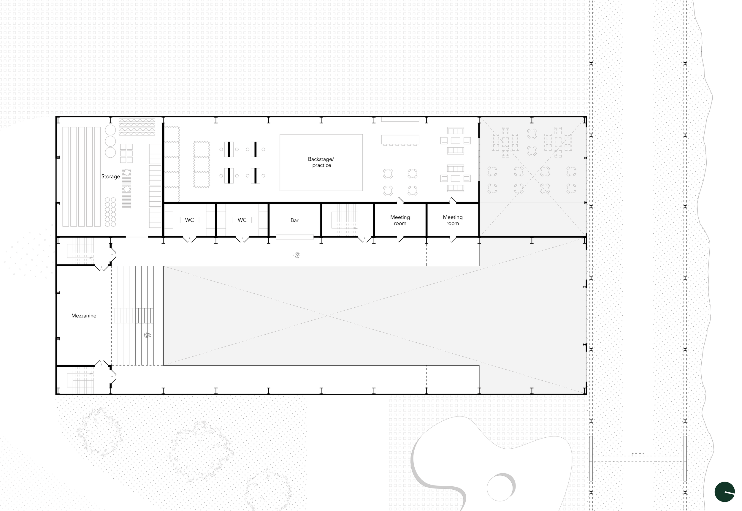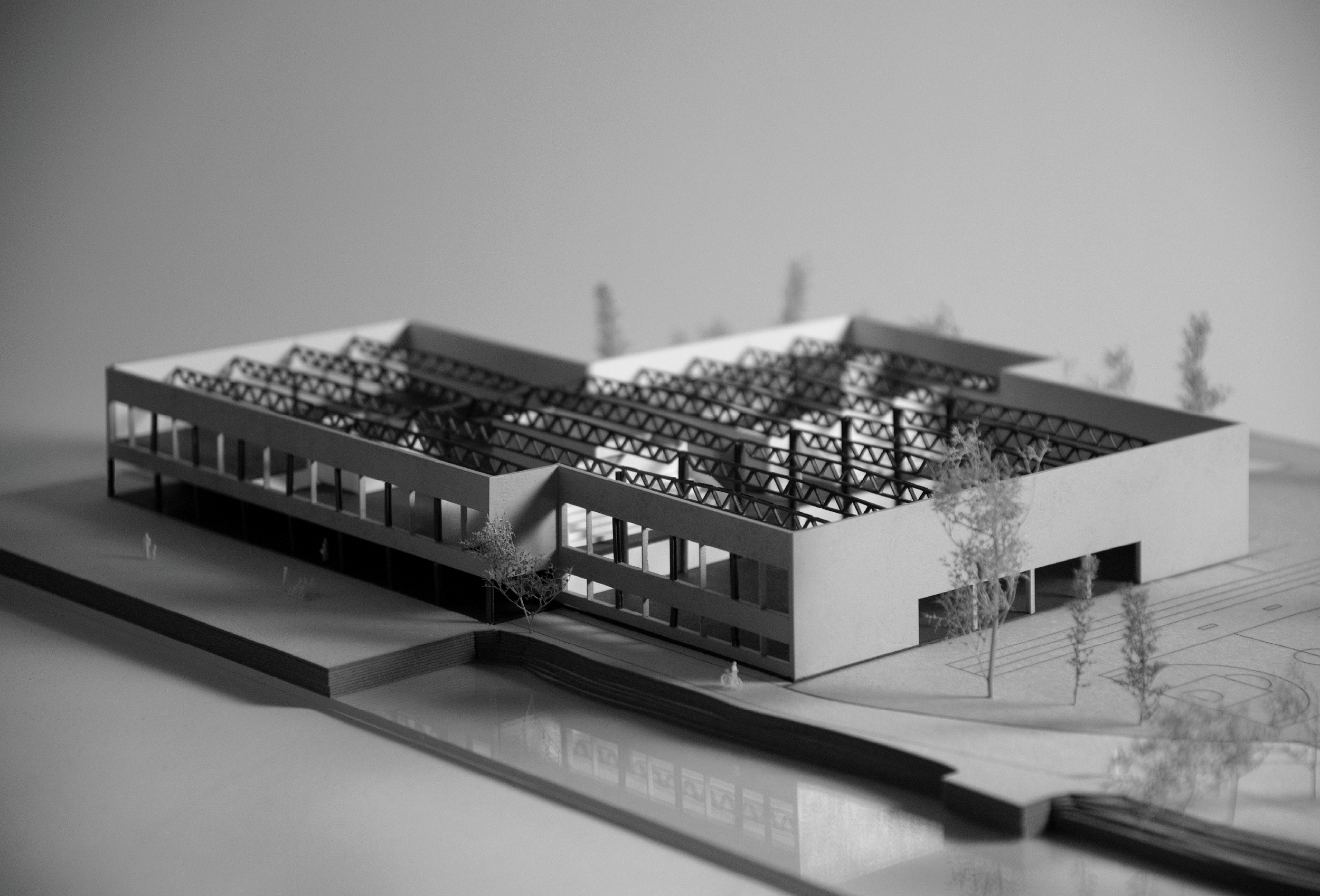 Den ikoniske industrielle produksjonshallen transformeres til et offentlig kulturbygg byen lenge har manglet. Hallens sterke uttrykk i bybildet gjør den til en naturlig vert for et nytt offentlig rom, og lar Holmens fremvoksende identitet utvikle seg rundt denne velkjente strukturen.